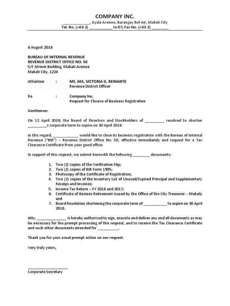 Sample Closure Letter For Business In Bir Free 8 Sample Letter Of Authorization In Ms Word Pdf Offering The Best Guide On Margins Spacing Fonts Writing A Formal Business Letter from i1.wp.com What are the closing or opening of bank account letters? Jonard torres owner, pymn laundry shop block. We provide here several professionally written letters to you regarding bank account and associated terms. Target audience for sample business letter. Letter of request for retirement/closure of business. The date your business will close. It is as close to a term of endearment as business etiquette will allow. Below are sample letters of business closure that specifically addresses each party.
